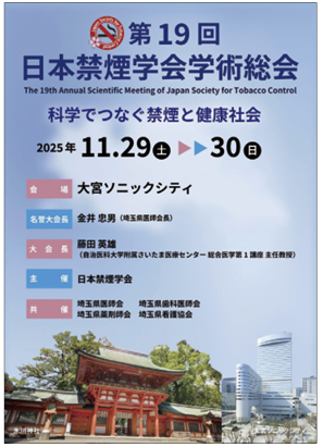 11月29日・30日に埼玉県さいたま市で開催された第19回日本禁煙学会学術総会に、代表・阿部、副代表・荻野が参加しました。